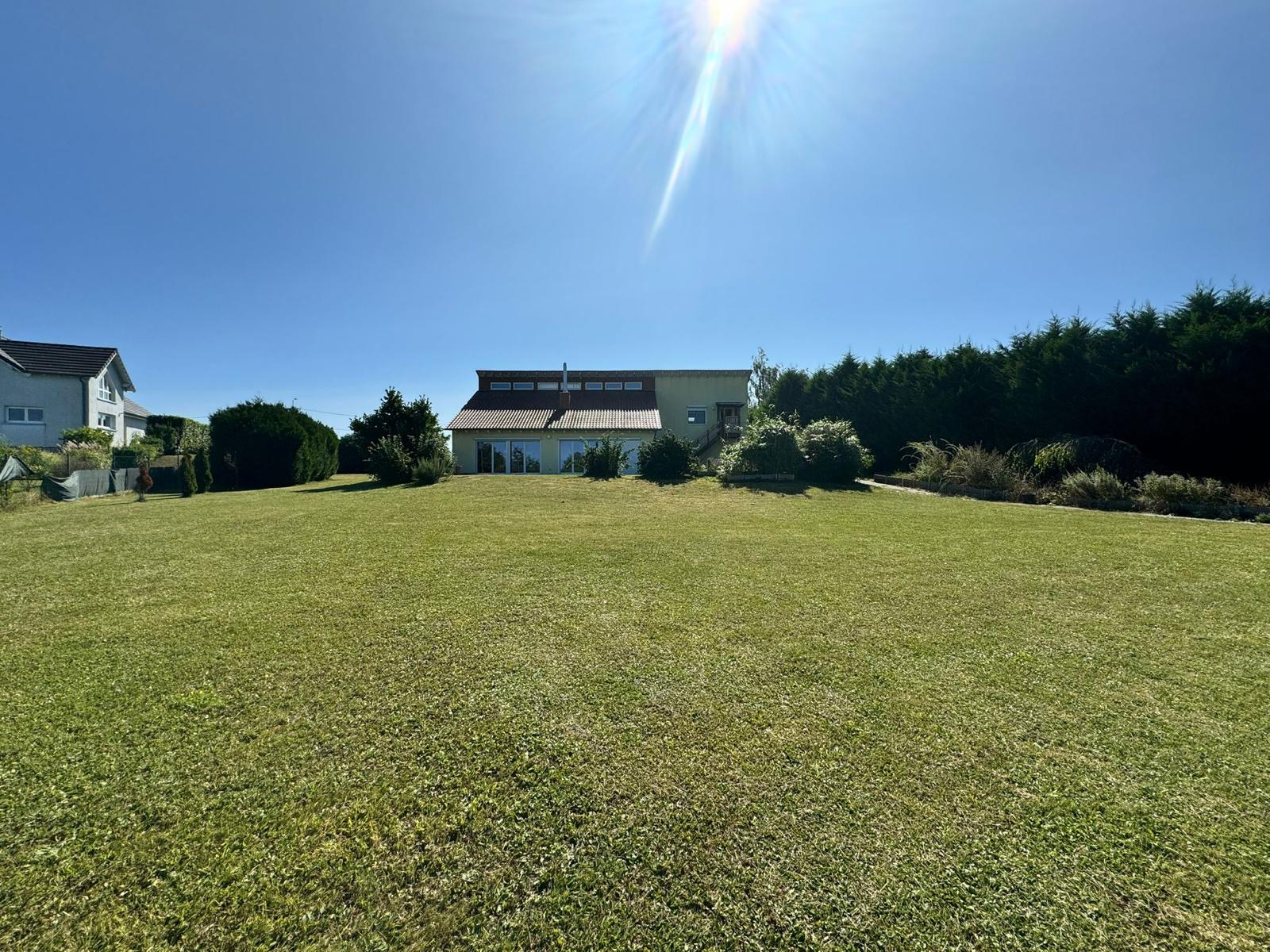 Au coeur d'un terrain de 42 ares avec vue dégagée sur la campagne, très belle maison comprenant au rez-de-chaussée sur 180 m² la "maison principale" avec une grande partie jour (cheminée au milieu) avec cuisine équipée donnant sur terrasse et jardin, bureau, salle technique avec accès direct vers les garages, 3 chambres, salle de bain ; à l'étage un appartement avec entrée indépendante vaste séjour, salle d'eau, une chambre.