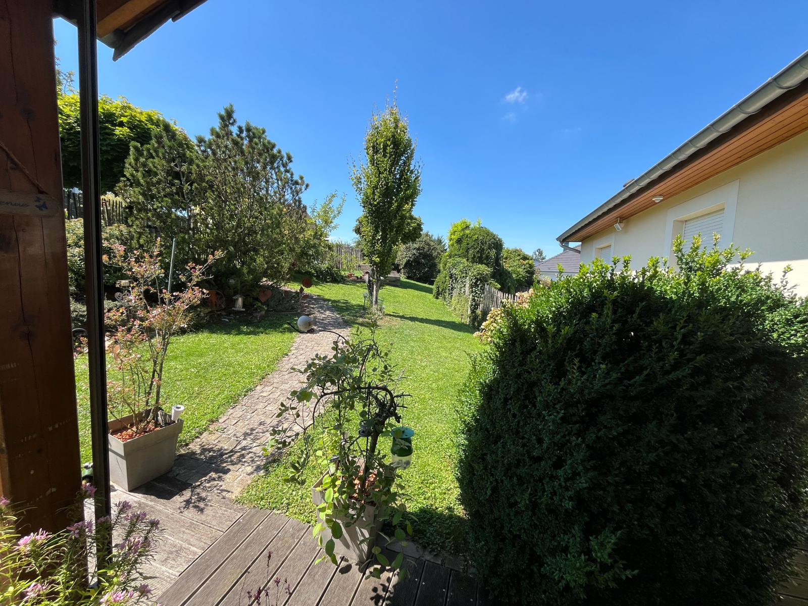 Elle comprend un vaste double séjour de 50 m² donnant sur terrasse de plain pied, grande cuisine équipée, bureau, quatre chambres, deux dressing, deux salles d'eau, 3 toilettes, cave complète carrelée et aménagée avec double garage, bel abri de jardin.