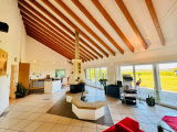 Au coeur d'un terrain de 42 ares avec vue dégagée sur la campagne, très belle maison comprenant au rez-de-chaussée sur 180 m² la "maison principale" avec une grande partie jour (cheminée au milieu) avec cuisine équipée donnant sur terrasse et jardin, bureau, salle technique avec accès direct vers les garages, 3 chambres, salle de bain ; à l'étage un appartement avec entrée indépendante vaste séjour, salle d'eau, une chambre.