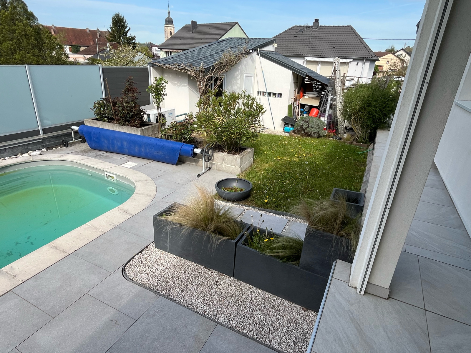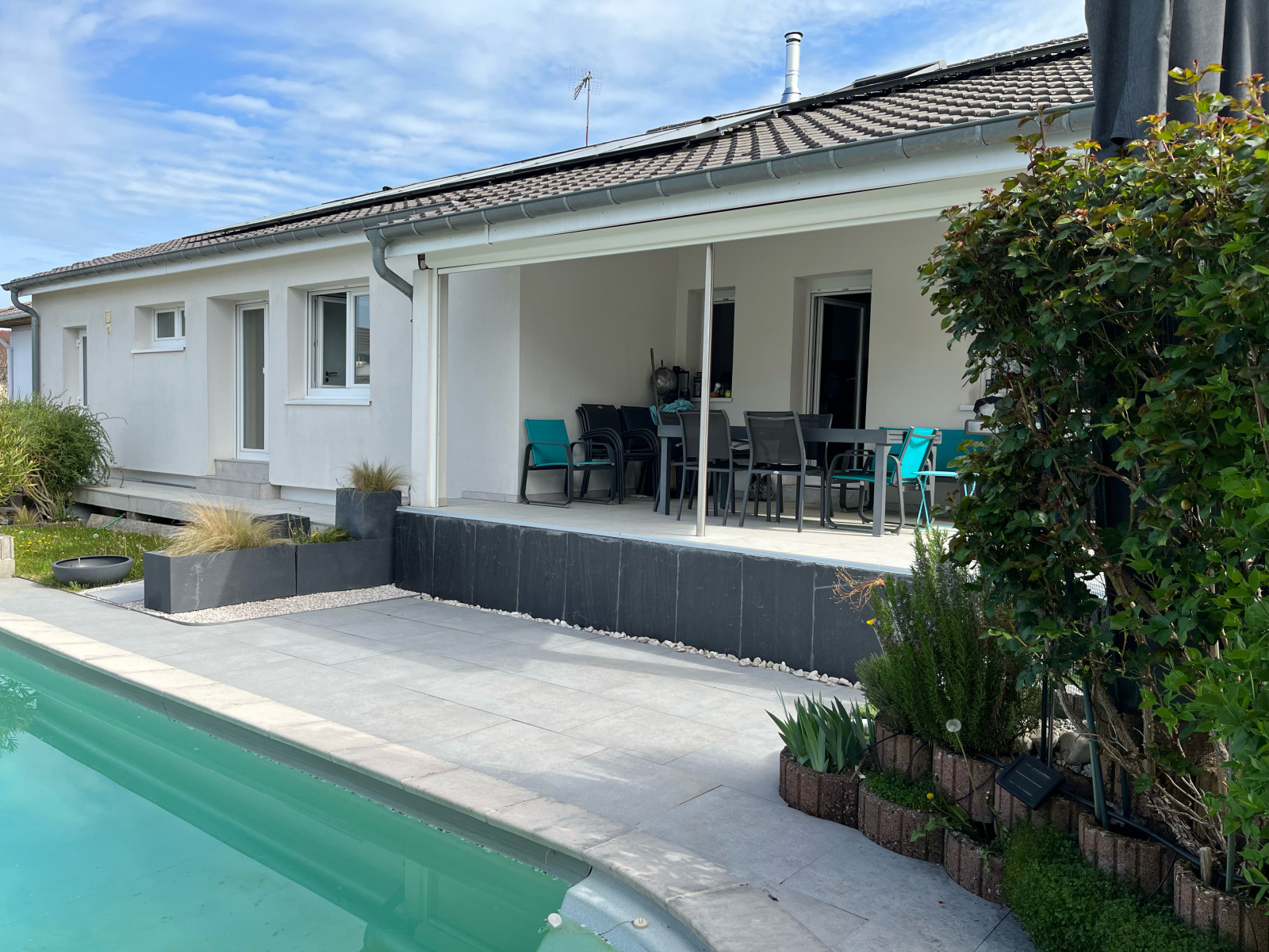 Le terrain (5.9 ares) est entièrement aménagé avec superbe piscine et son local technique.