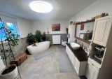 Il offre un espace de vie généreux pour une famille et comprend hall d'entrée, toilettes, vaste partie jour avec cheminée, cuisine ouverte, accès à la véranda et à l'extérieur, 3 belles chambres, salle de bain moderne avec douche à l'italienne, baignoire.